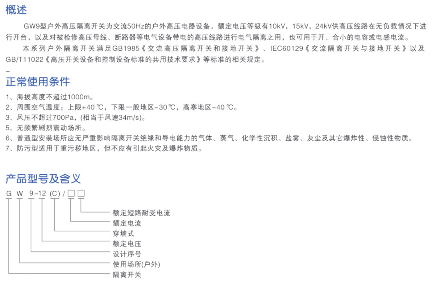 GW9-12系列戶外高壓隔離開關(guān)
