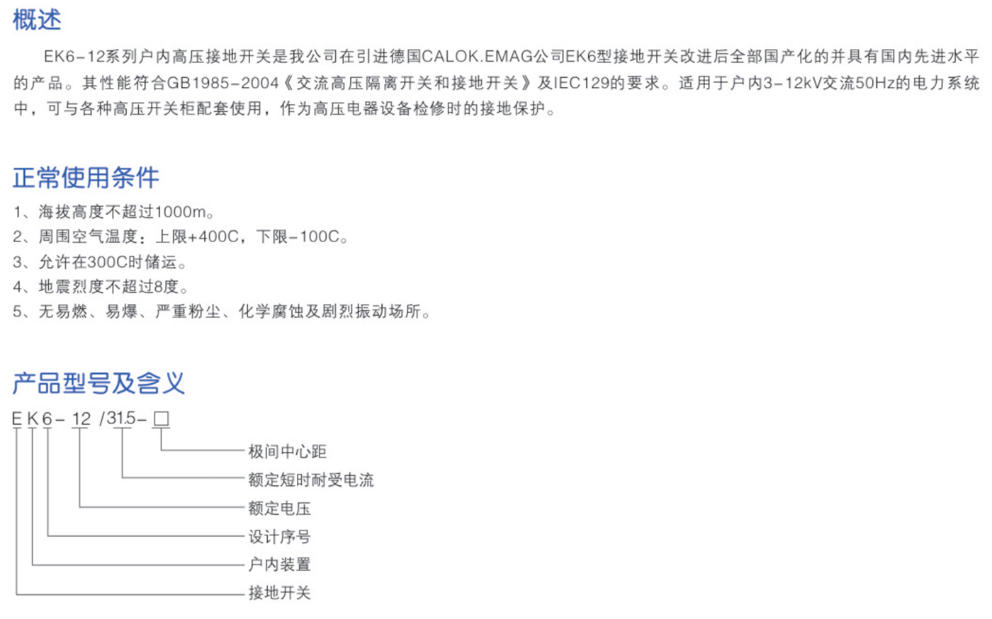 EK6-12系列戶內(nèi)高壓接地開關(guān)