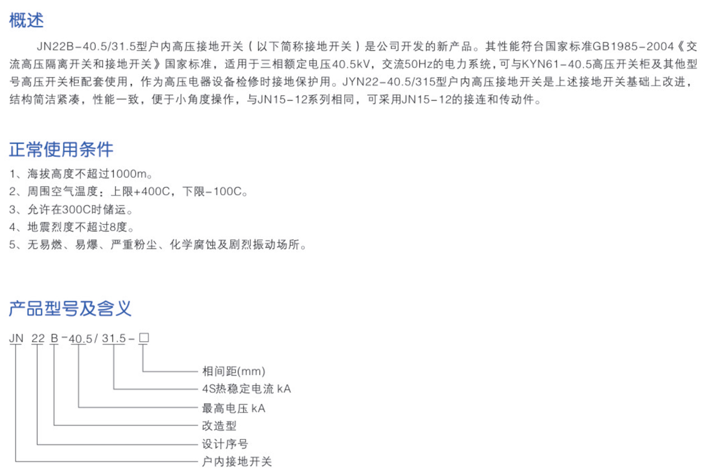 JN22B-40.5/31.5系列戶內(nèi)高壓接地開關(guān)