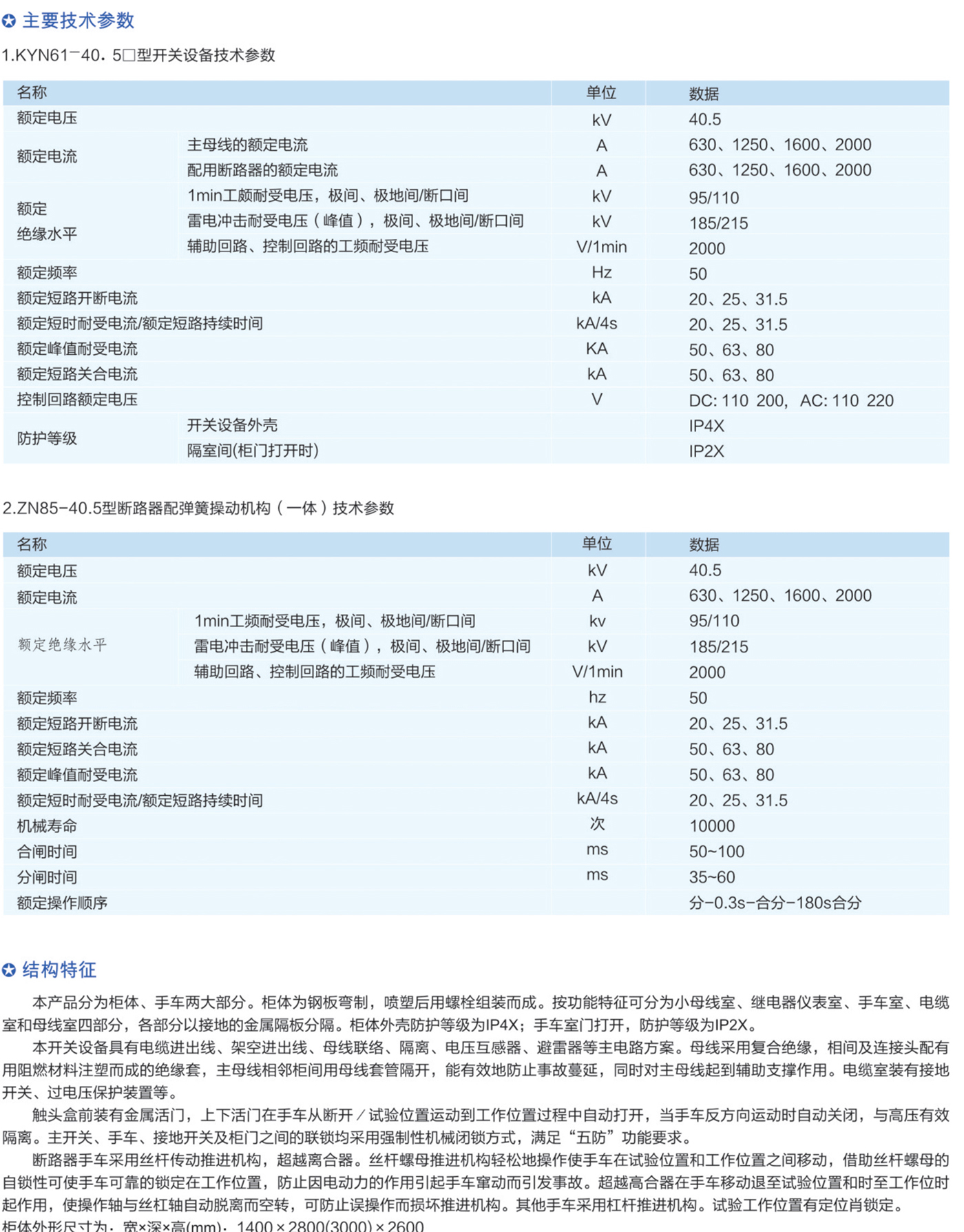 KYN61-40.5(Z) 型鎧裝移開式交流金屬封閉開關(guān)柜系三相交流量 50Hz、額定電壓 40.5kV 的戶內(nèi)成套配電裝置。作為發(fā)電廠、變電站及工礦企業(yè)接受和分配電能之用,對(duì)電路起到控制、保護(hù)和監(jiān)測(cè)等功能 , 還可用于頻繁操作的場(chǎng)所...