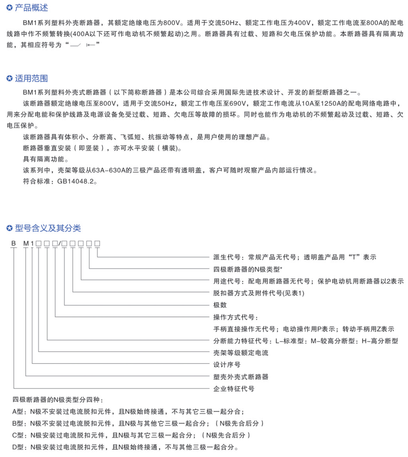 BM1系列塑料外殼式斷路器主要適用于交流電路保護,具備高分斷能力和多種操作方式。 ??它是一種用于低壓配電系統(tǒng)的保護設備,其核心功能是通過快速切斷電路來防止過載、短路等電氣故障引發(fā)的安全隱患...