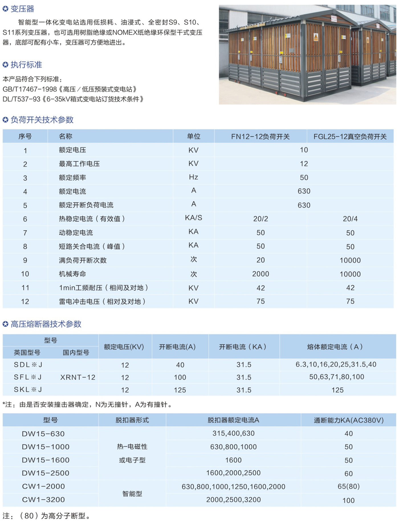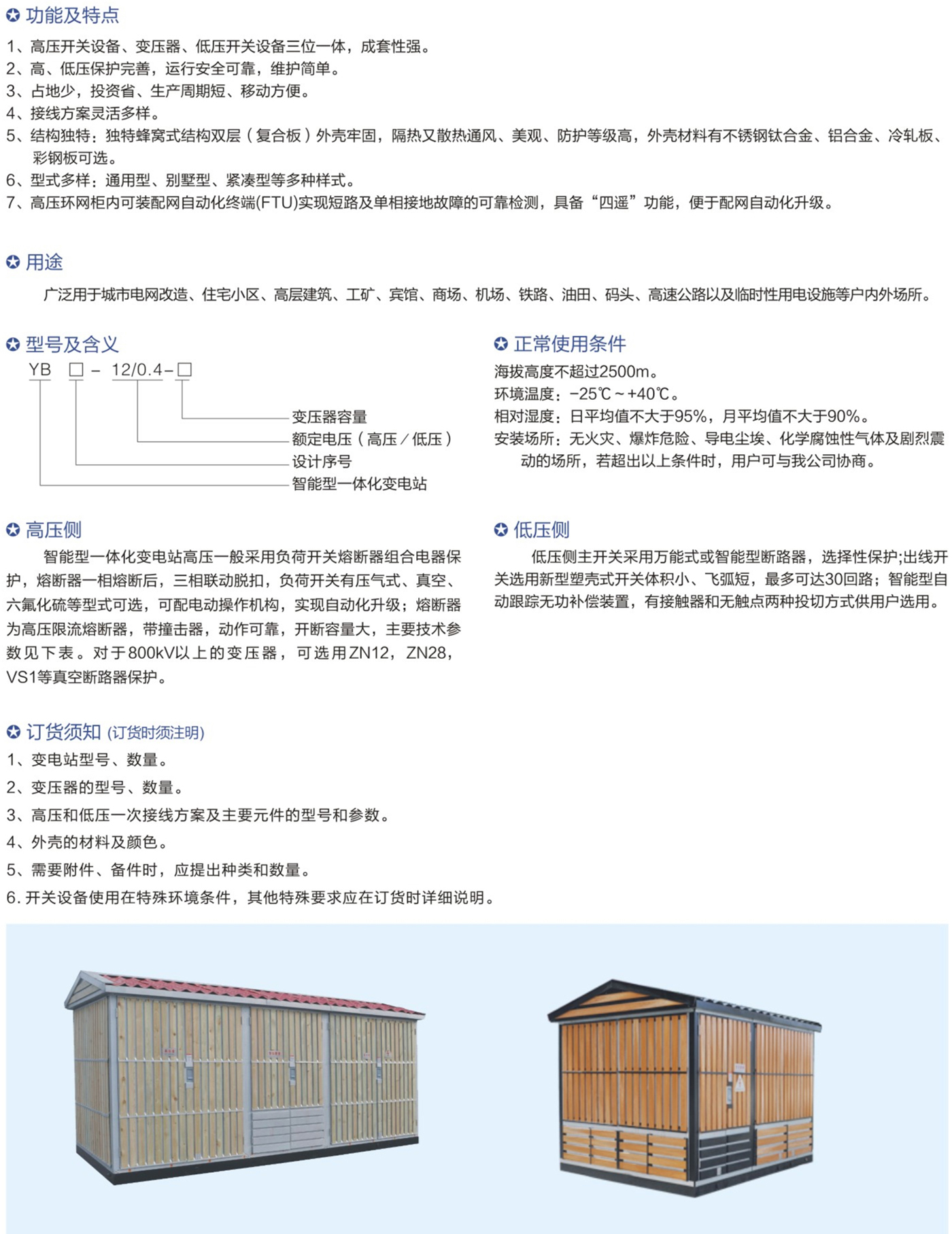 本產(chǎn)品符合GB17467《高壓/低壓預(yù)裝式變電站》標(biāo)準(zhǔn)。適用于城市公共配電、路燈配電、工礦企業(yè)、市區(qū)建筑、住宅小區(qū)、油田碼頭、賓館、公園及工地施工等,可實現(xiàn)環(huán)網(wǎng)或終端型供電方式...