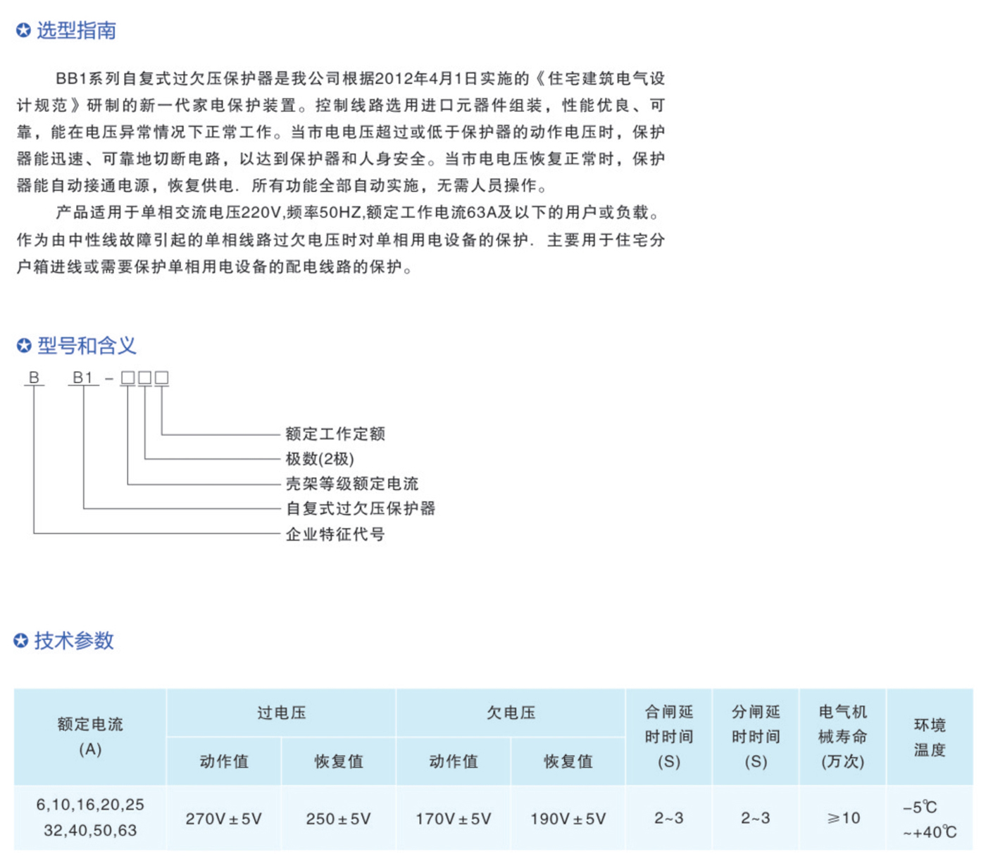 BB1系列自復(fù)式過(guò)欠壓保護(hù)器