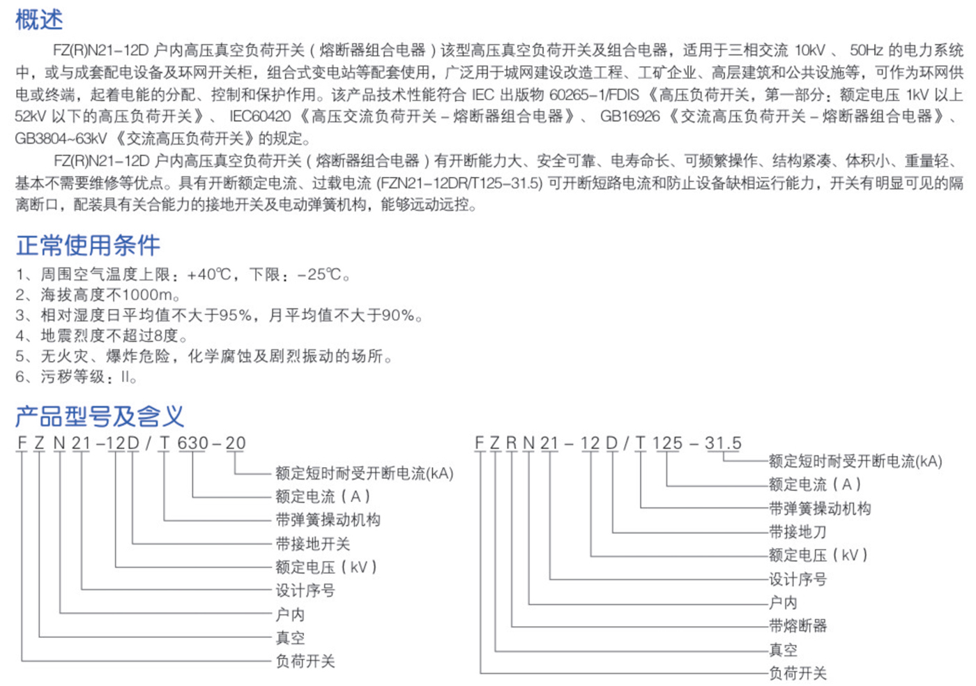 FZ(R)N21-12D室內(nèi)高壓交流真空負(fù)荷開關(guān)-熔斷器組合電器用于交流頻率為50赫茲、額定電壓為10千伏的電力系統(tǒng)中,以切斷負(fù)荷電流、過載電流和短路電流。特別適用于無油、免維護(hù)、經(jīng)常運(yùn)行的環(huán)網(wǎng)供電設(shè)備和終端供電變壓器需要控制和保護(hù)的場所...